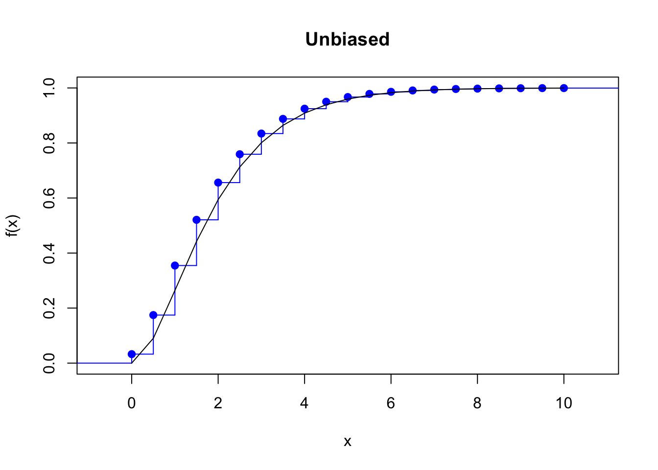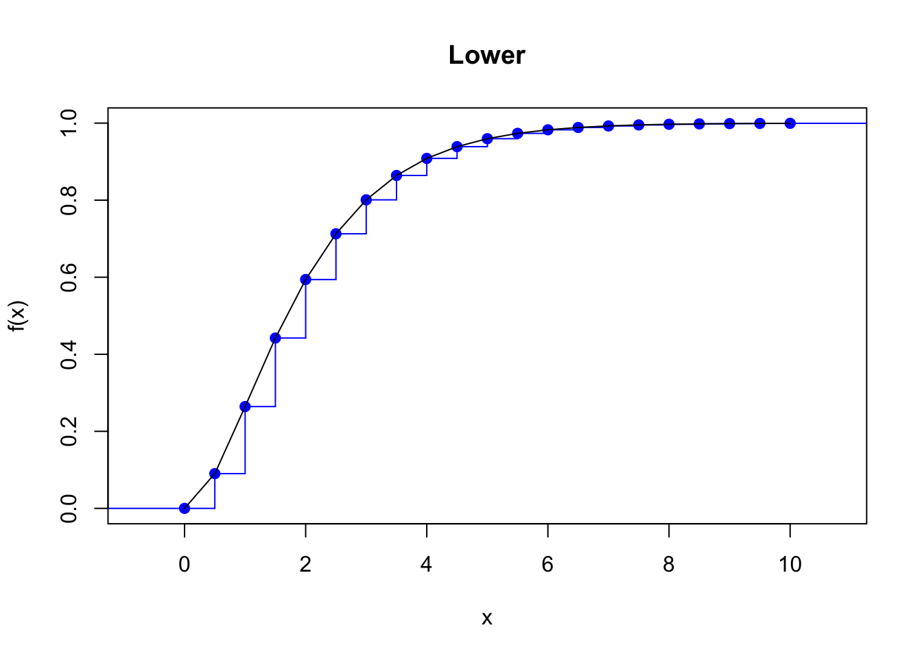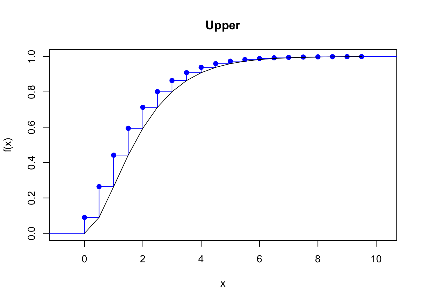 \end{align*}\] The discretized cdf is always under the true cdf.