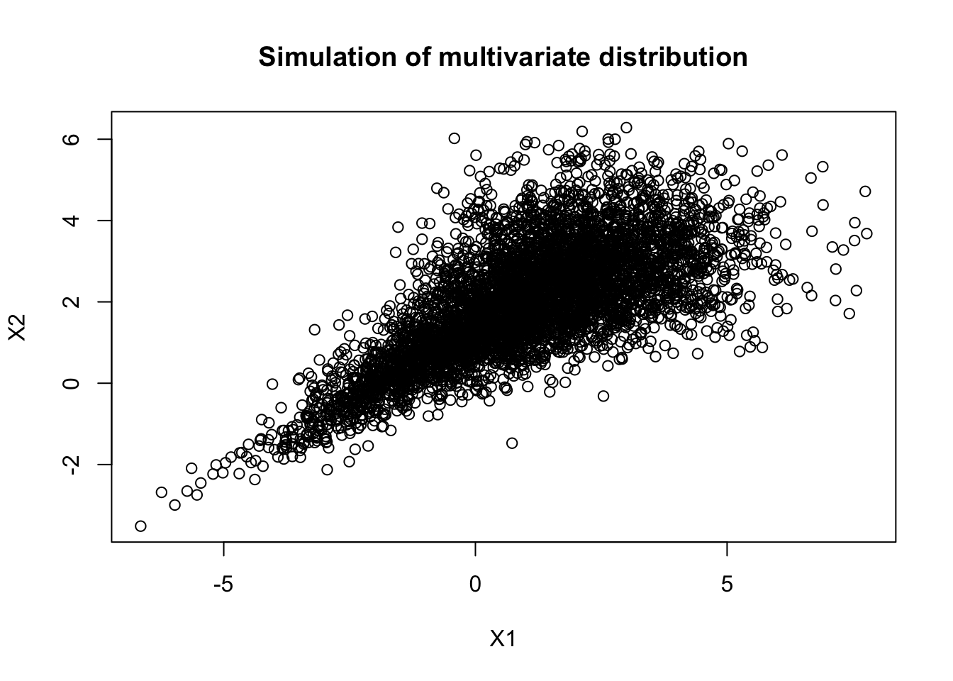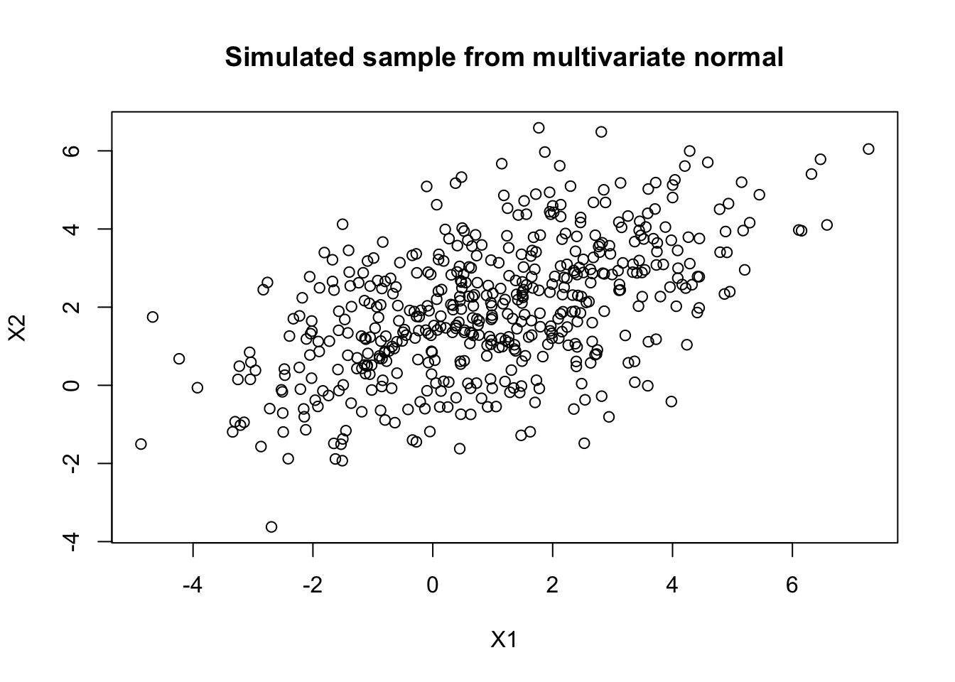 \] where \(s_{\mathbf{x}}\) and \(s_{\mathbf{y}}\) are the sample standard deviations of \(\mathbf{x}\) and \(\mathbf{y}\), respectively. In R, the sample correlation is computed using the cor() function. For example,