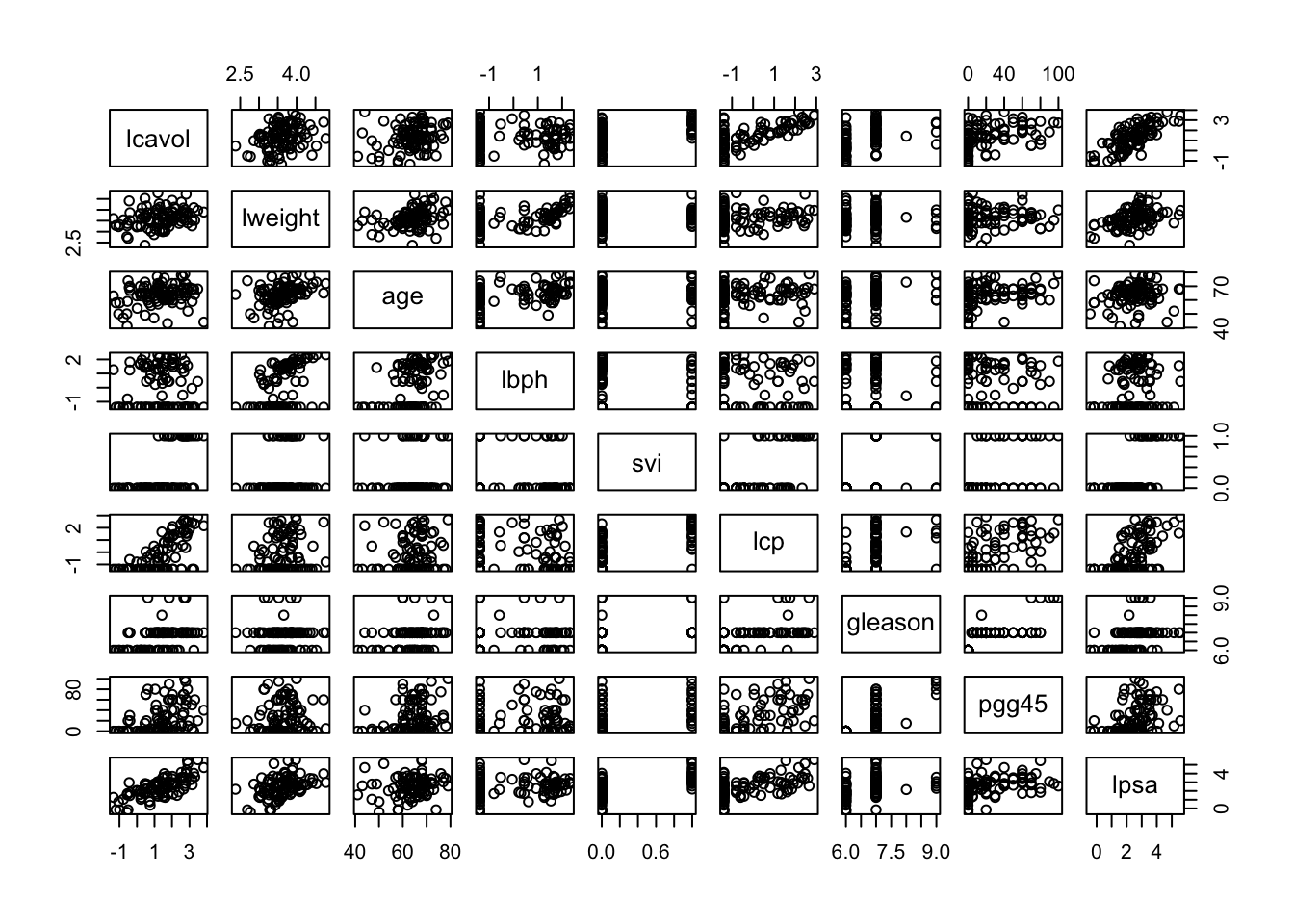 xn lcavol lweight age lbph svi lcp gleason pgg45